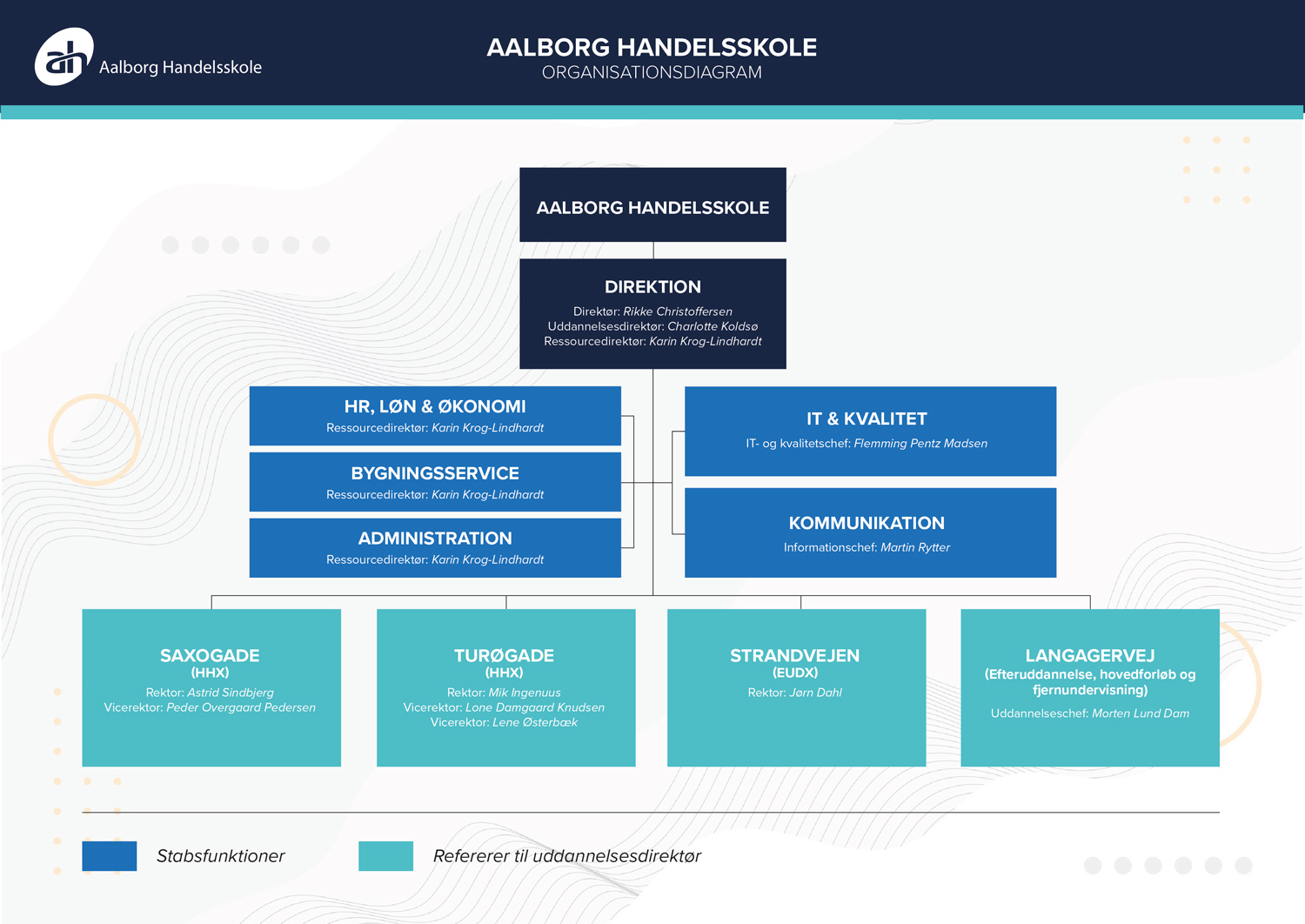 - Skolens fællesadministration og økonomiafdeling har til huse på Strandvejen 25, 9000 Aalborg.